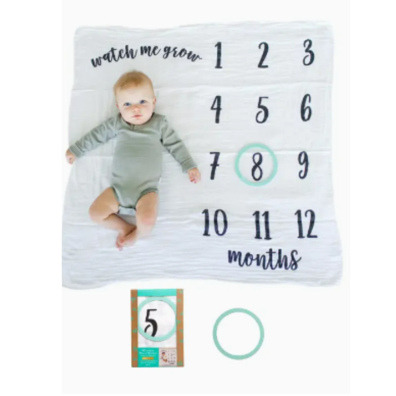 Modern Baby Milestone Blanket: This all-in-one milestone prop makes the best baby shower gift. Our timeless memory blanket makes it easy to capture your baby’s month and age to watch your baby learn and grow each month • Perfect for Photo Sharing: This newborn milestone blanket is designed for effortless photo sharing, you’ll love dressing up your baby girl every month for a creative newborn photoshoot. • Baby’s First Year Photos: Place your baby girl or baby boy underneath the words “watch me grow” and use the included teal felt photo prop to circle each month from 1 month through 12 months as your baby grows, creating a visually appealing and organized layout for capturing monthly milestones • Classic Baby Keepsake: The timeless white backdrop is perfect for baby girl or baby boy. Use the included teal circle prop to frame each milestone, adding a pop of color to your baby’s photos. Large Blanket Size: 40” W x 36”H