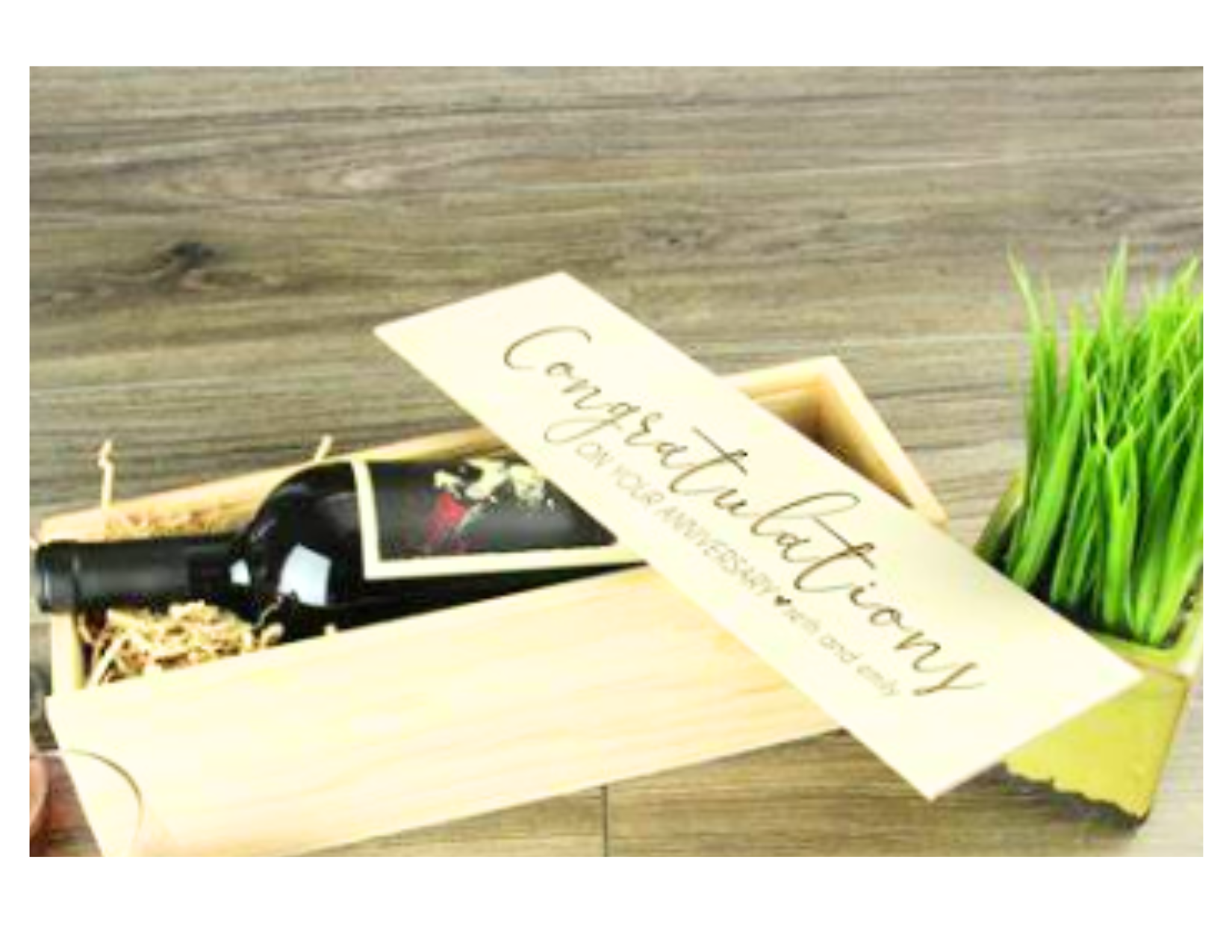Add a personal message to a wooden wine box for any special occasion. Would be a great gift for anything from anniversaries a promotion, graduation, Mother's Day, retirement or happy birthday!
