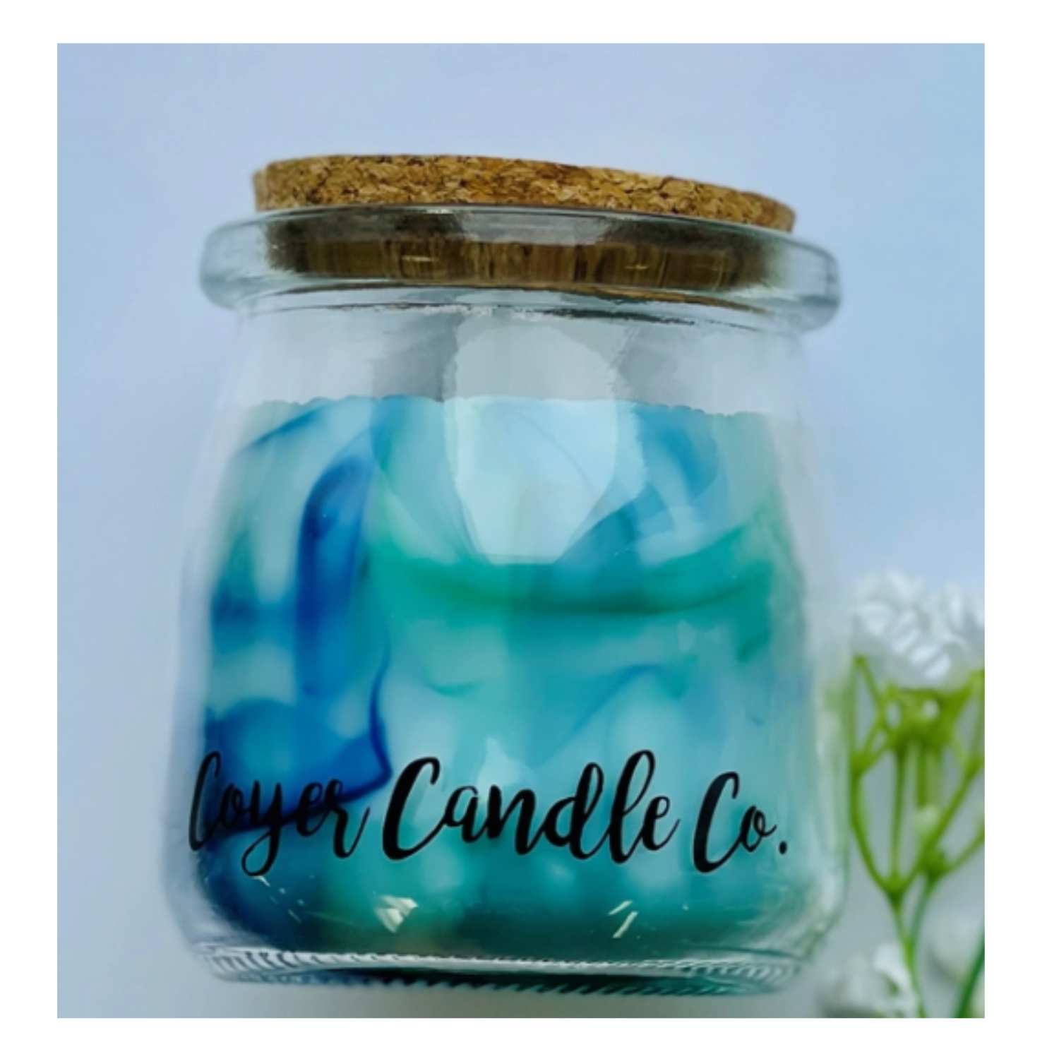 Driftwood candle. Swirled aqua and blue wax makes for a uniqu mason jar candle.