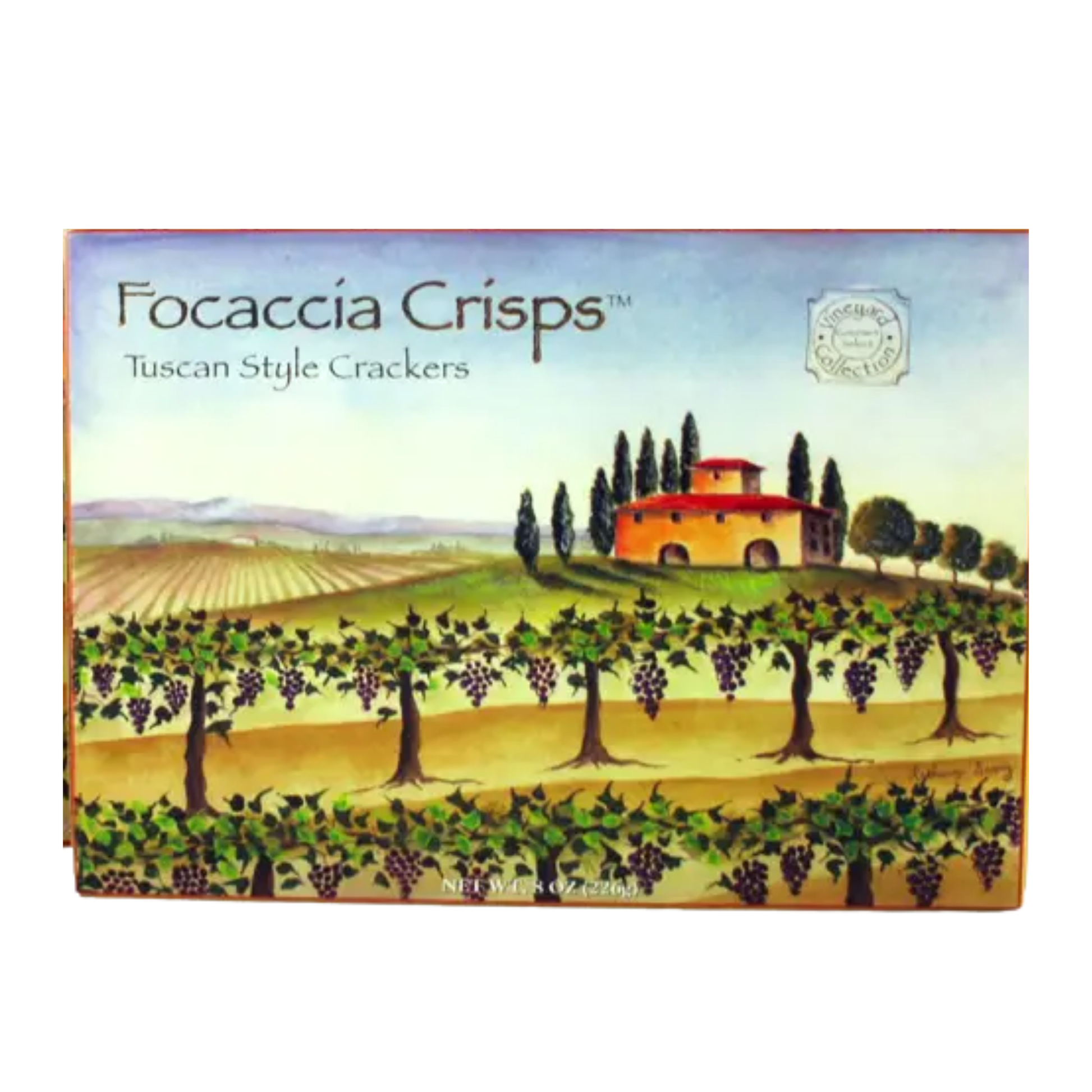 Focaccia Crisp Tuscan style crackers in a beautiful vineyard themed box.