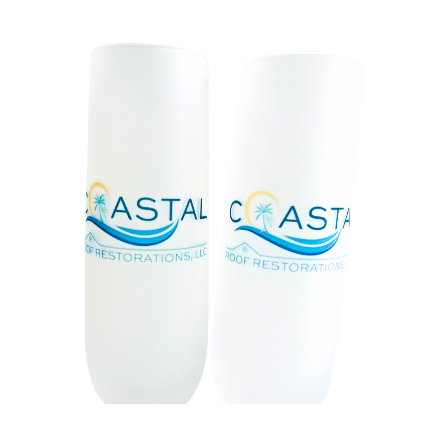 No minimums required! Frosted and stemless champagne flute made of glass. Logo is permanently baked in to make a lasting impression!