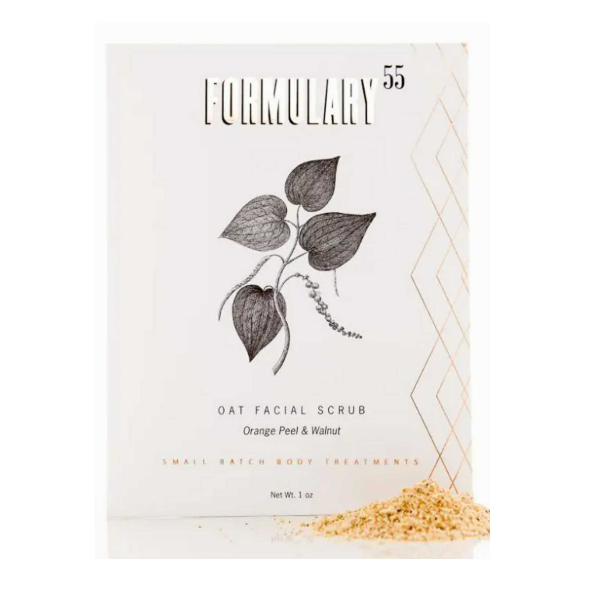 Our gentle oat facial scrub acts as a cleanser and exfoliant. With organic ground oats, orange peel, powdered walnut and essential oils of frankincense and lavender, this small batch scrub is gentle yet effective. Packaged in our beautifully designed gold leaf botanical envelope, perfect for gift giving. How to use: pour a small amount of the mixture into the palm of your hand. Add enough water to make a paste and apply to face using upward and outward strokes. Massage with your fingertips in small, circular motions. Rinse your skin and pat dry. Admire your beauty! .75 oz. envelope