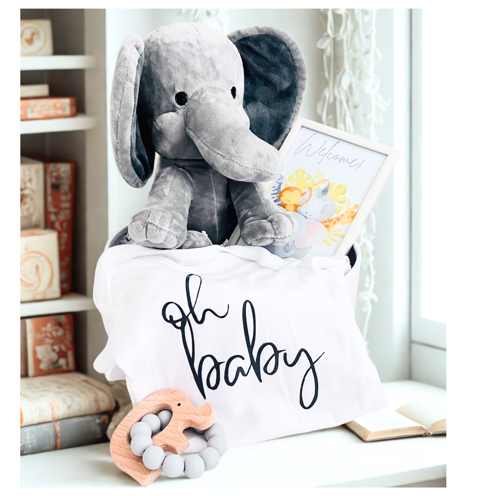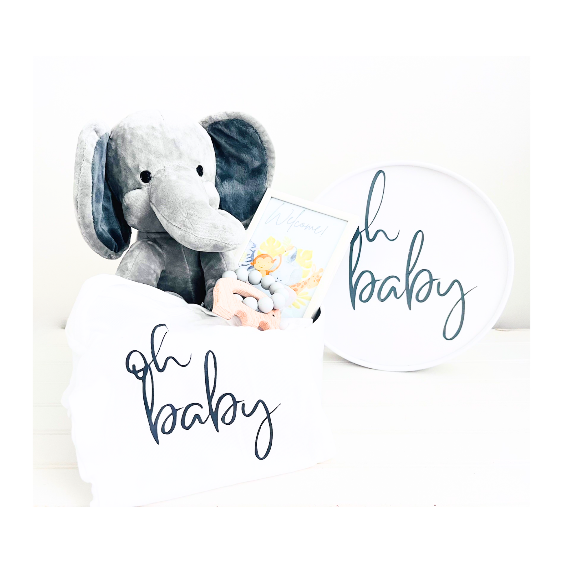 Celebrate new arrivals with the Oh Baby Gift Box, thoughtfully curated to delight both parents and baby. This expert selection combines essential baby items crafted for comfort and practicality, making it an ideal gift for welcoming newborns. Perfect for showers or first visits, the Oh Baby Gift Box offers a seamless blend of quality and thoughtful presentation. Substitute "oh baby" for baby's name.