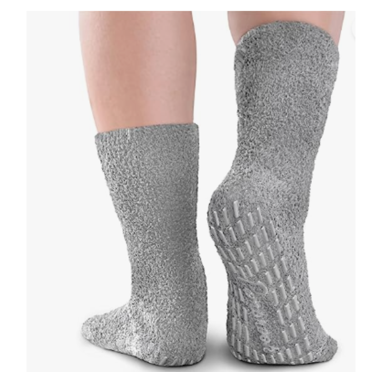 Unisex soft grey socks with gripper bottom.
