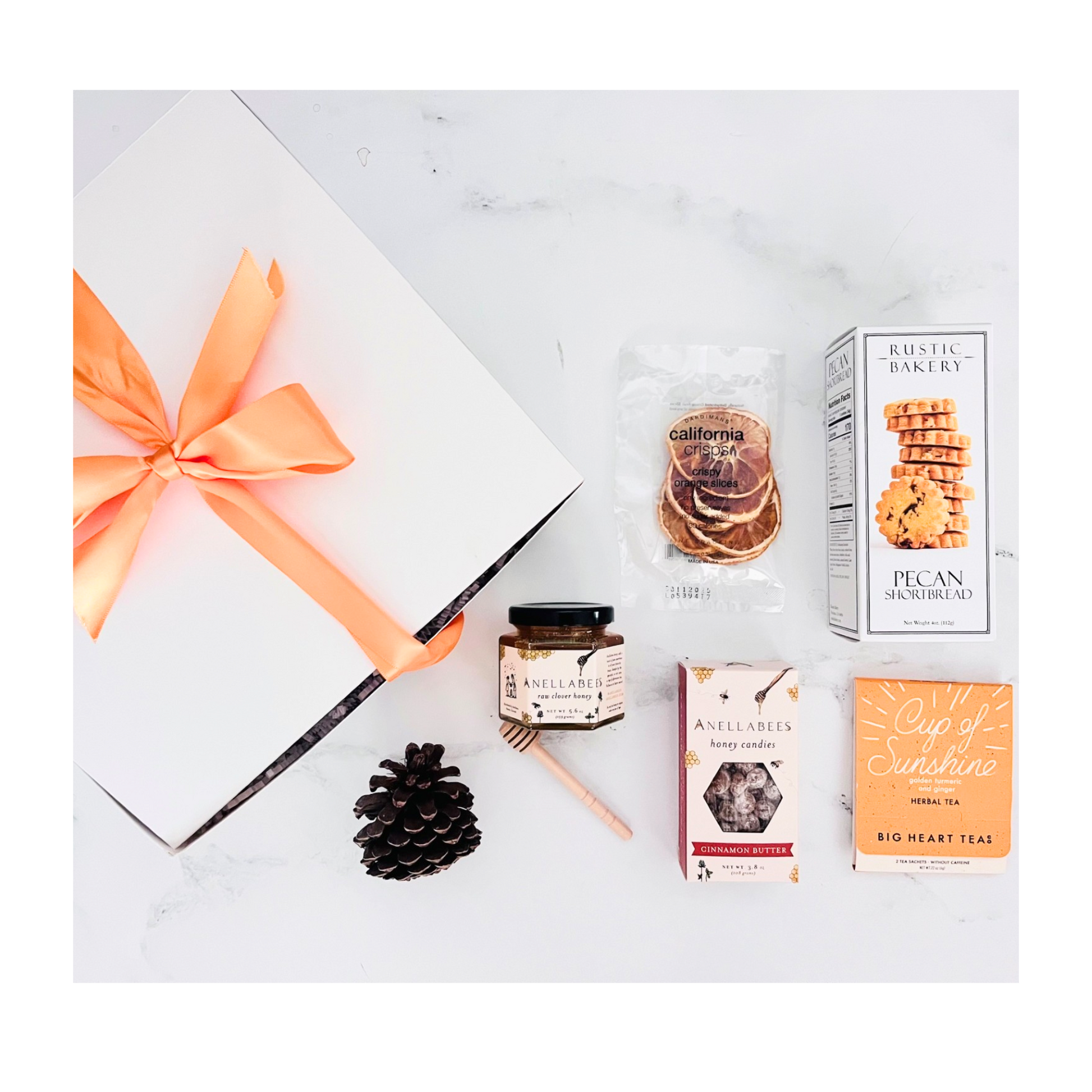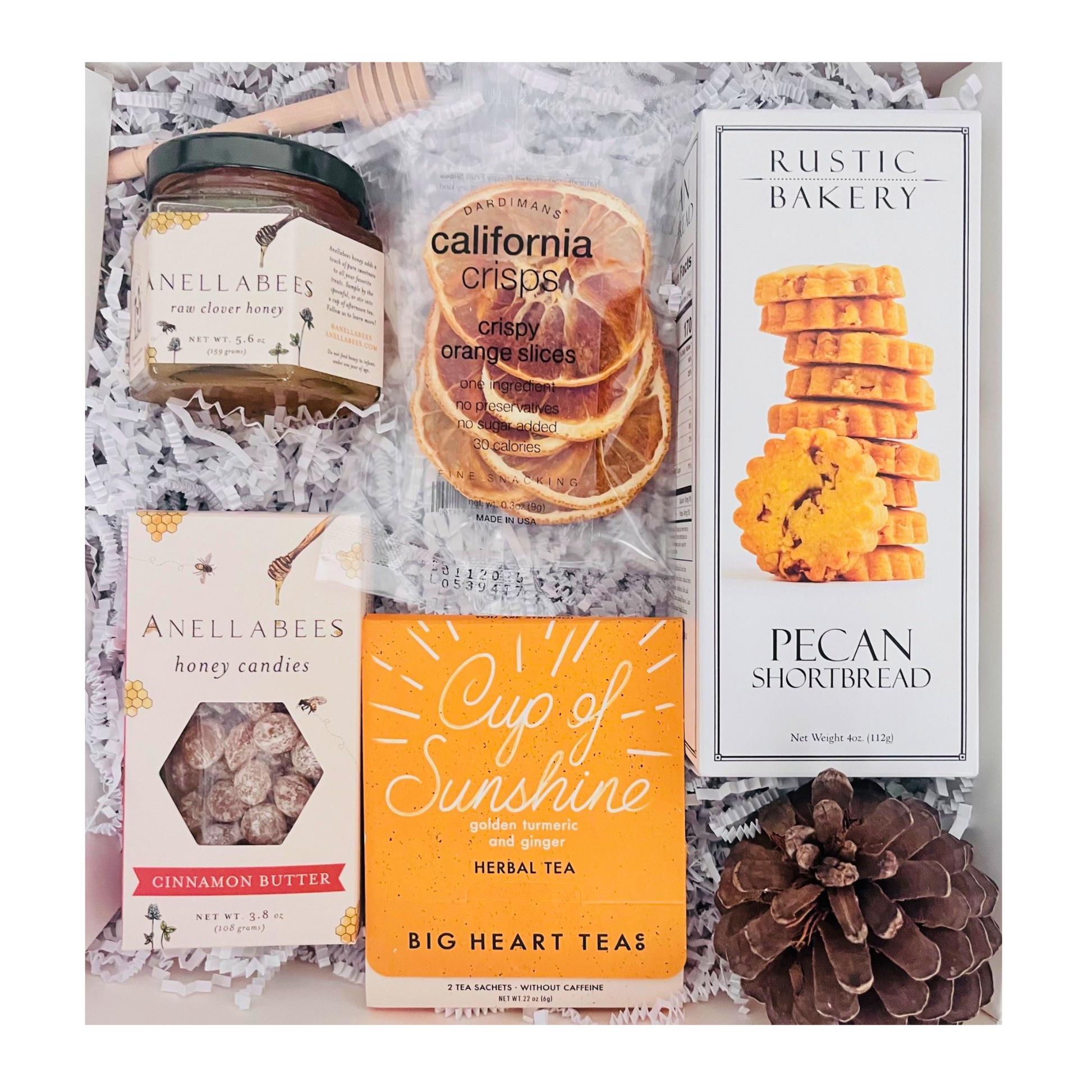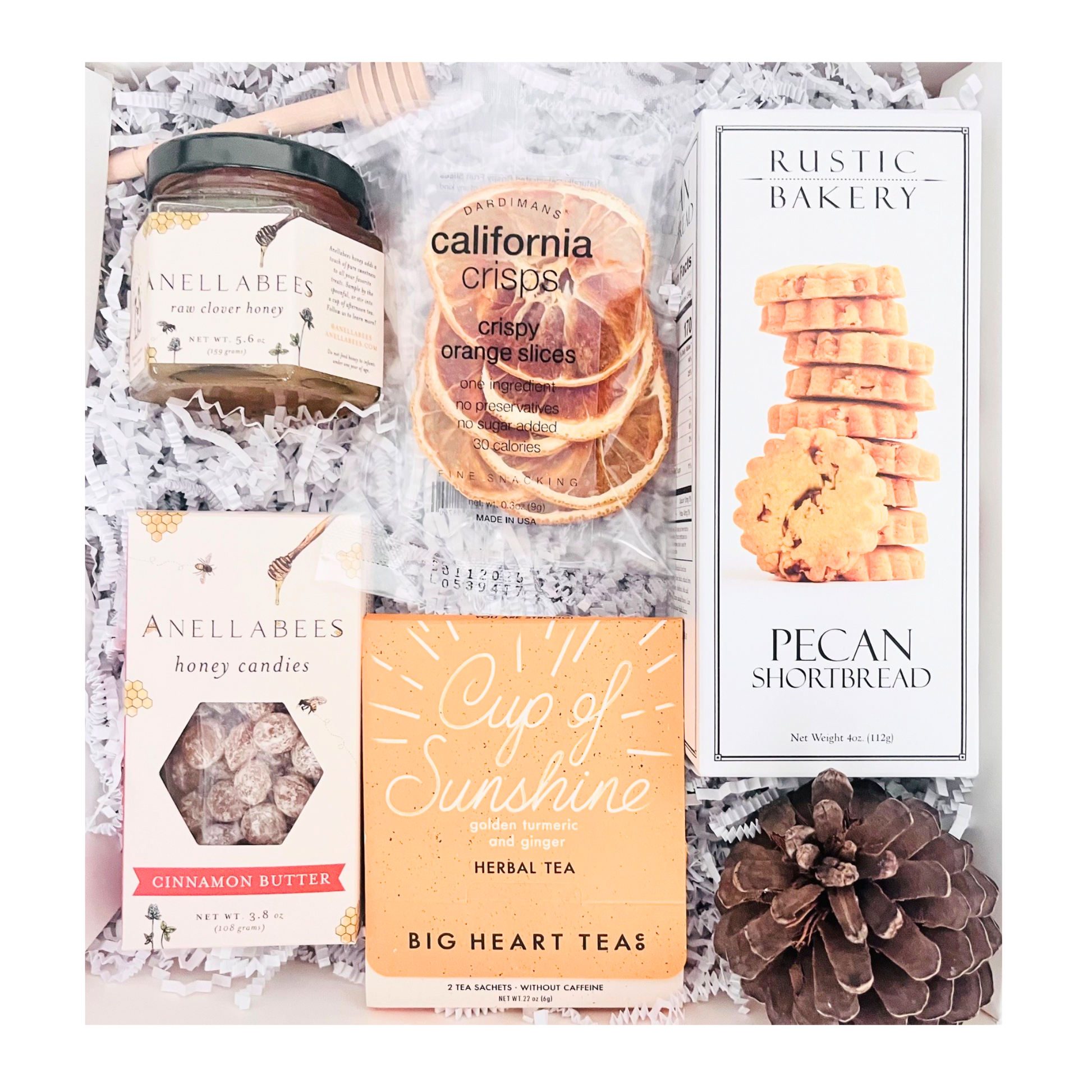 This gift box will brighten anyone's day. Perfect gift for someone who just had surgery or to comfort someone who is sick or sad. Comes with handwritten card with sunshine.